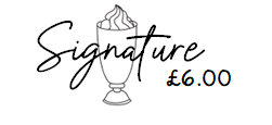 Our signature milkshakes are made up of vanilla ice cream, semi-skimmed milk, selected feature chocolate bar/flavour plus whipped cream topping. £6.00 each. Double up chocolate bar for £1 extra. Add an espresso shot for 50p more.